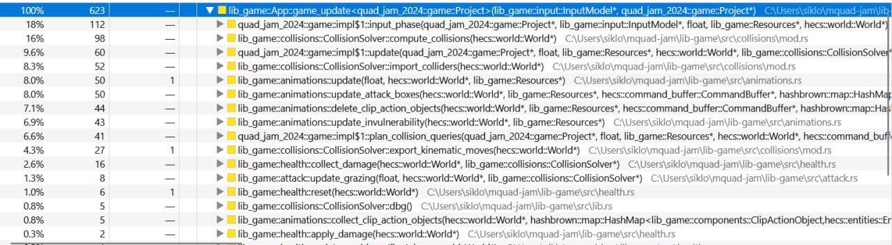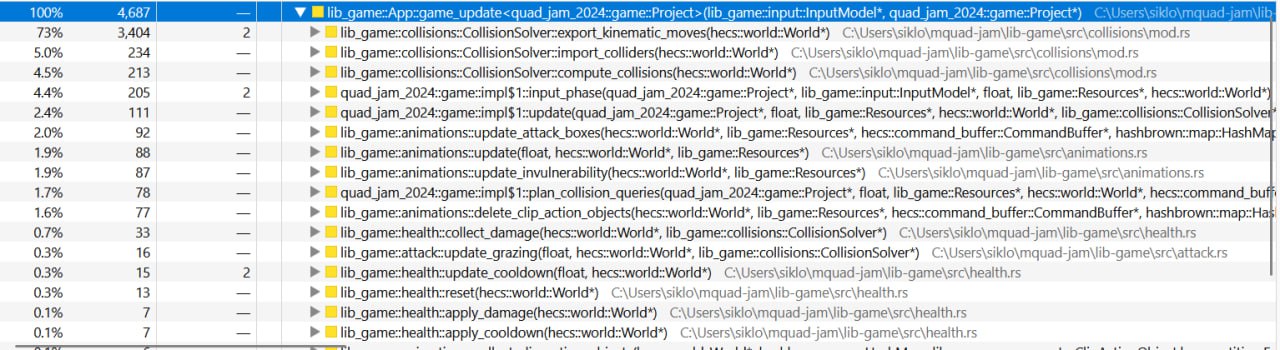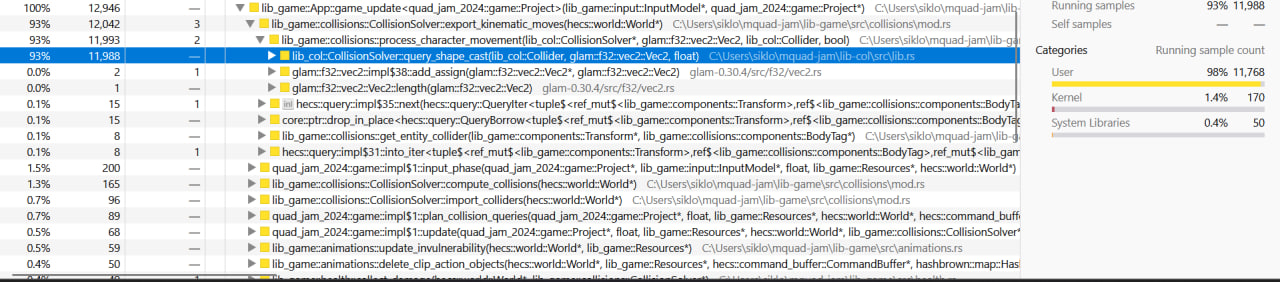 I ran my program in the same overloaded scene using Samply to capture a CPU profile.